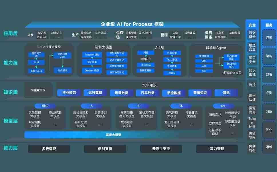 端到端的一站式AI工作空间深度融合了从企业战略规划到日常经营的全流程业务板块,,定向解决车企内部领域多、、部门多、、、链条长、、、场景碎片化等难题,,,,支持车企快速构建以AI为核心的生产力写作体系,,,,实现任务执行与AI能力的无缝集成与交互
